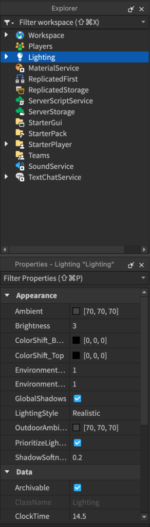 Lighting is a service on Roblox Studio that handles the lighting in your game.